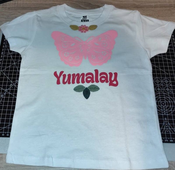Camiseta BLANCA, con nombre y dibujo monocromo.